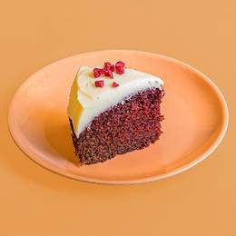 El pastel famoso con su color llamativo rojo de frambuesas y su frosting delicioso de vainilla, contiene dióxido de azufre y sulfito, huevo, leche, soja, trigo