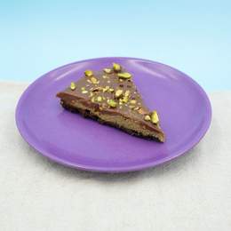 Base crujiente de galleta de avellanas y chocolate, con un relleno de crema de pistacho y hebras de knafeh, no te lo pierdas!