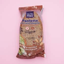 2 trozos de pan integral. Hecho con almidon de maiz, fecula de patata, con semillas de lino, harina de legumbres.