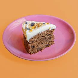 Un bizcocho típico inglés con zanahoria, especias, pasas y nueces debajo de su frosting de limón, contiene huevo, leche, pasas, trigo