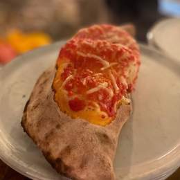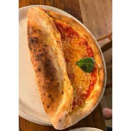 Pizza cerrada rellena con tomates mozzarella Funghi veg-cotto
