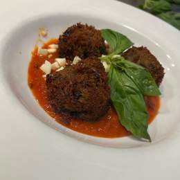 Croqueta de patatas con mozzarella sal pimienta y perejil
