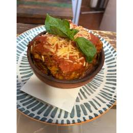 Pastel de berenjena en cazuela con salsa de tomate albahaca y mozzarella vio life