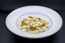 Ñoquis de patata con salsa de tomate, mozzarella, parmesano, pimienta negra y albahaca