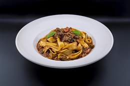 Tallarines anchos con ragú napolitano de ternera cocinado a baja temperatura