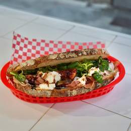 Crostone Maria: Porchetta d'ariccia provola ahumada y patatas al horno