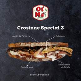 Crostone Roberta: mortadela provola ahumada y crema de pistachos