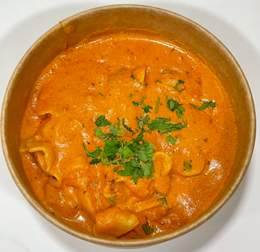Salsa de tomate, cebolla, salmón ahumado y crema de leche