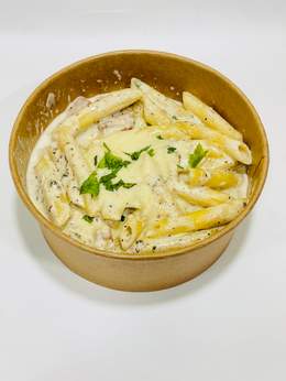 Champiñones, cebolla, jamón dulce, bacon, salsa napolitana y nata