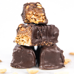 Nuestra versión de snicker vegano, hecho a base de dátiles, avena, cacahuetes y chocolate negro ¡Sin azúcares añadidos!
