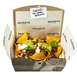 Nachos caseros, guacamole, pico de gallo, creme fraîche, jalapeños y frijoles.
