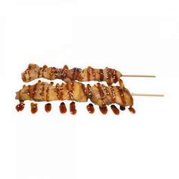 8 unidades. Sushi de pollo rebozado, aguacate, salsa teriyaki, sesamo, arroz y alga nori.