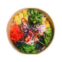 Lechuga, tomate, col, maíz, aceitunas y carne de pollo
