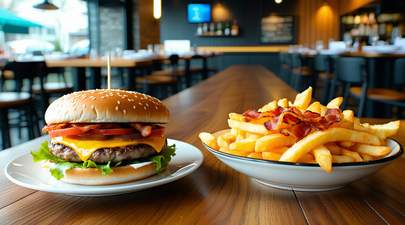 Patatas fritas cubiertas con queso fundido y crujiente bacon