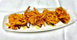 Cebolla fileteada rebozada con harina de garbanzo y especias indias