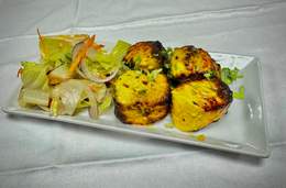 Selección de la mejor parrilla de nuestro tandoori, y servido con ensalada y naan