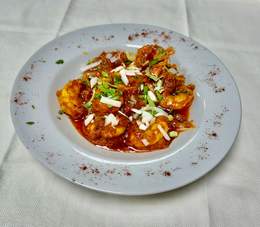 Masala casolana. Dados de pollo marinados con especias y yogur. seguidamente cocinados en tandoor y nuestra salsa de masala casera