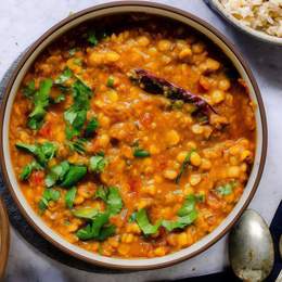 Lamb meat and chickpeas cooked in curry sauce with garlic ,ginger and gresh coriander