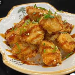 Uramaki frito aguacate surimi queso cebolla frita y salsa teriyaki