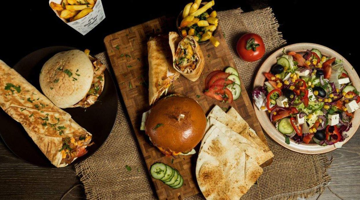 Carne rotisată la alegere, lipie, cartofi pai de casă, roșii, castravete proaspăt/ murat, varză asezonată, ceapă roșie cu sumac, salată mix. *gratuit - 3 sosuri la alegere - 700g