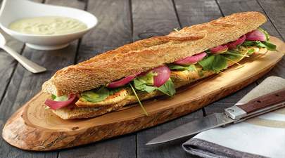 20. Bocadillo Caliente De Pechuga De Pollo Empanada, Lechuga Y Ali-Oli