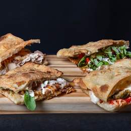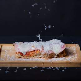 Focaccia Rellena De Patata Asada, Cochinillo asado y crema parmesano.