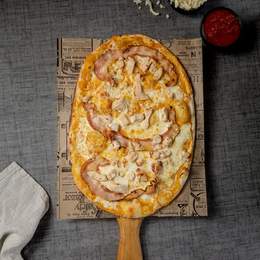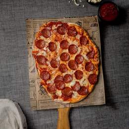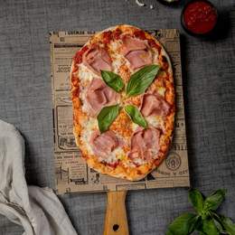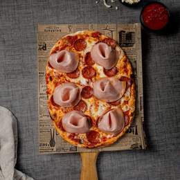 Salsa de tomate, mozzarella fior di latte, salami italiano picante y prosciuto cotto.