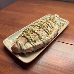 Calzone de Pistacho relleno de crema de pistacho y chocolate blanco.