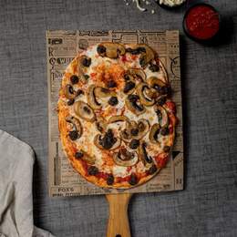 Salsa de tomate, mozzarella vegana, champiñones frescos, y salsa de trufa.