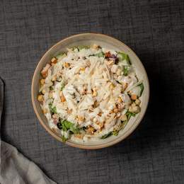 Brotes tiernos, pollo braseado, croutons, salsa César y escamas de granna padano.
