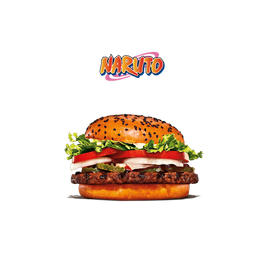 El Whopper® de siempre al estilo Naruto, con carne aderezada con sal y pimienta, deliciosa salsa teriyaki y pan naranja con semillas de sésamo negro. Todo ello, acompañado del delicioso Sandy Naruto y la bebida que prefieras.¡Dattebayo!