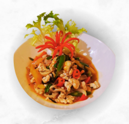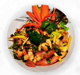 Pollo con mango, limón, cilantro, lemongrass y chalota