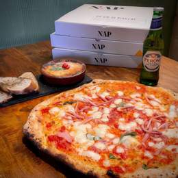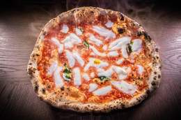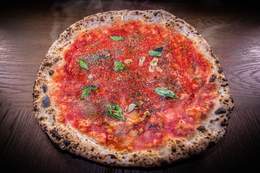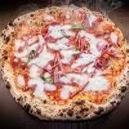 Ligera base de tomate, mozzarella, jamón de Parma, virutas de Grana Padano DOP, rúcula y aceite de oliva virgen extra
