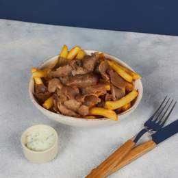 Ternera gyros con Patatas fritas y la salsa de tu elección!