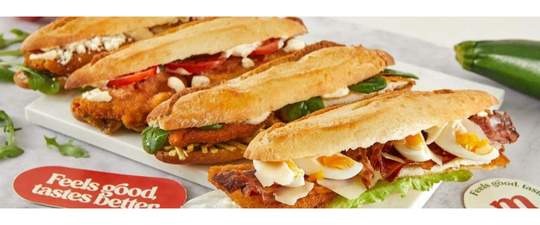 ¡Bocadillo con una combinación perfecta! Nuestro bocadillo club lleva tu elección de milanesa, huevo cocido, tomate fresco, bacon y nuestra mayonesa de limón