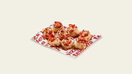 8 rollos de masa con bacon, queso y salsa de tomate.
