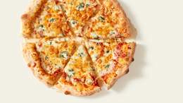 Masa fresca, mezcla cuatro quesos (mozzarella, queso azul, emmental, edam) y salsa de tomate.