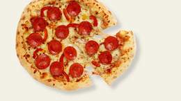 Masa fresca, doble ración de pepperoni y fundido para pizza.