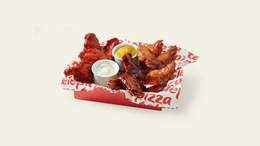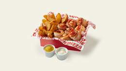 Fusión perfecta de sabores y texturas: patatas gajo, alitas crujientes, pan de ajo y dos salsas de 35g para mojar, una mezcla 100% adictiva.