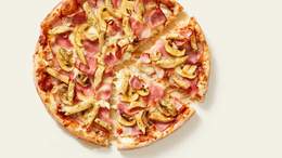 Masa fresca, doble de york, piña, fundido para pizza, tomate y extra de fundido para pizza.