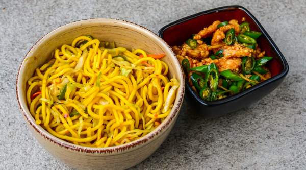 96. Fideos Chinos Fritos Con Salsa De Carne Picada