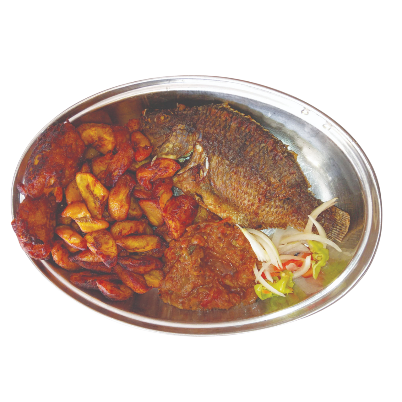 poisson assaisonné et cuit à la friture avec de l'attiéké