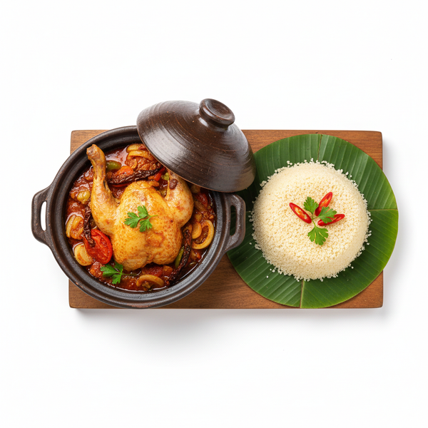 Pondeuse mijotée à l'étouffée avec légumes et épices traditionnelles