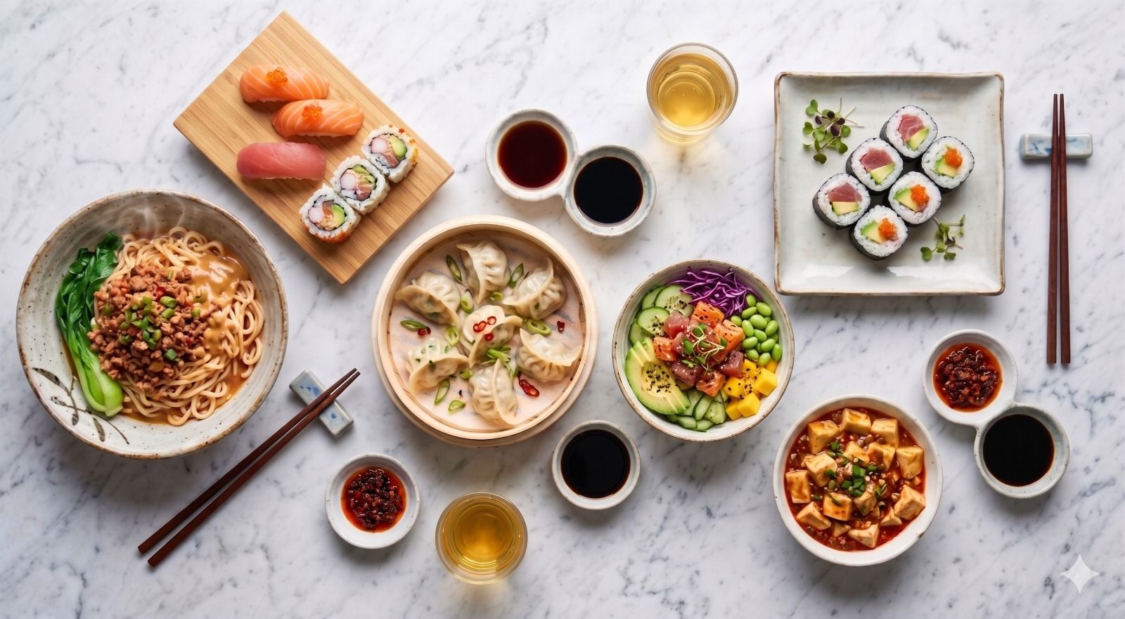 2 ravioli di carne,2 ravioli di gamberi,2 ravioli vegetali, 2 xiao longbao, 2 shaomai