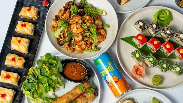sushi roll, brochettes, crevettes, nems, riz cantonnais vegies