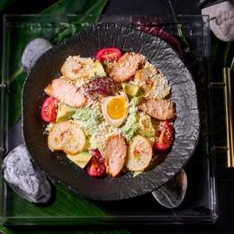 ტრადიციული სალათის საფირმო ვერსია ავოკადოთი და მოხარშული კვერცხით Signature version of traditional salad with avocado and boiled egg