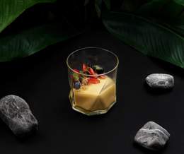 მწიფე, წვნიანი მანგოსგან დამზადებული ტროპიკული ლიმონათი ნაღებით Creamy tropical lemonade made from ripe, juicy mangoes