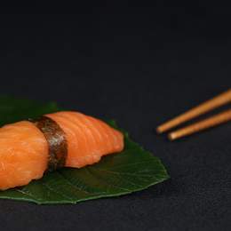 (55გრ) ორაგული, ბრინჯი, ჯინჯერი, ვასაბი, სოიოს სოუსი