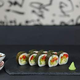(485გრ) უნაგი, ბოსტეულის მარინადი, ჰაიში ვაკამე, კიტრი, ავოკადო, ნორი, სეზამი, სიმინდის მარცვალი, ანანასი, ბრინჯი, სეზამი