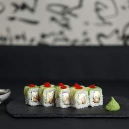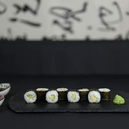 8 ნაჭერი, (130გრ) ავოკადო, ბრინჯი, ნორი, ჯინჯერი, ვასაბი, სოიოს სოუსი